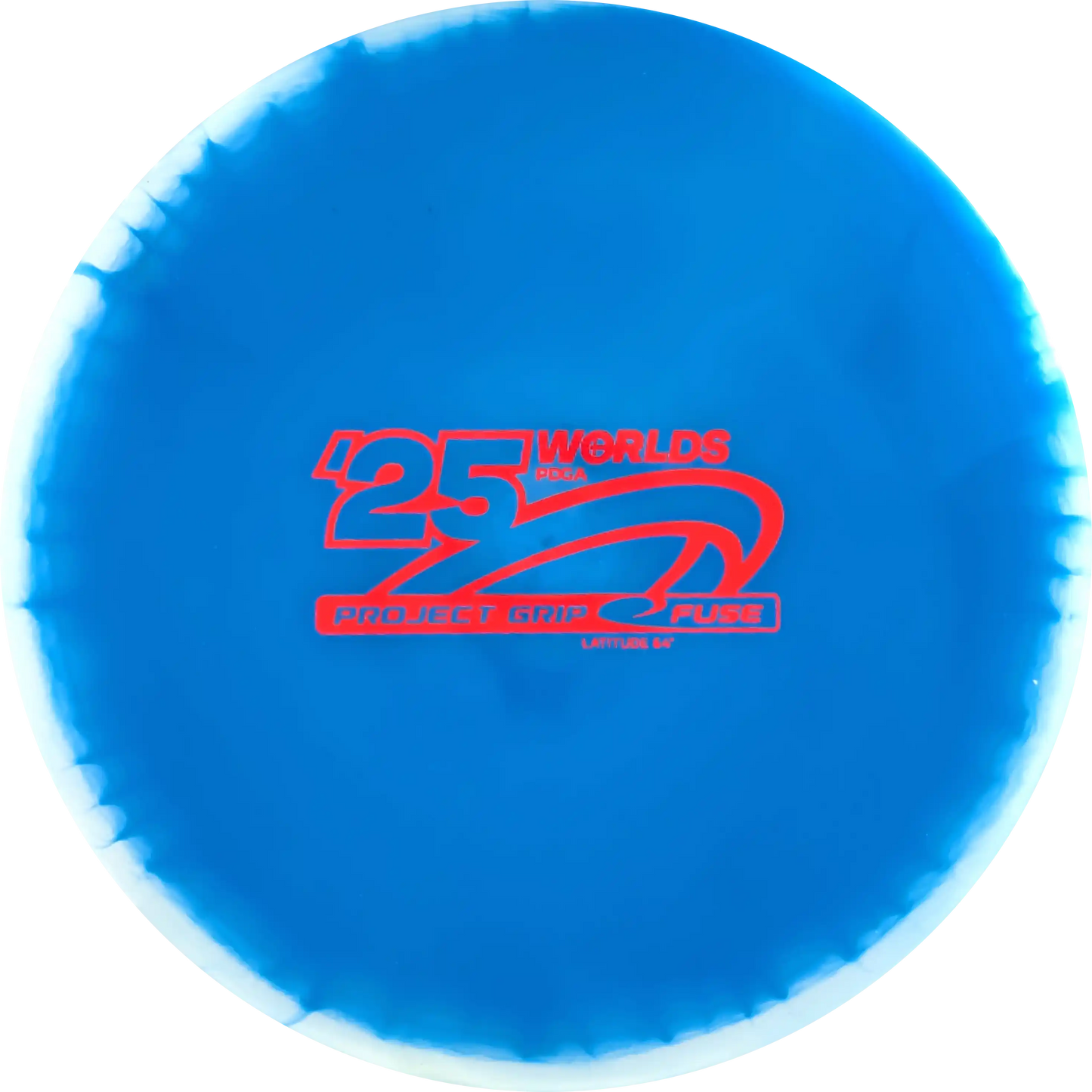 Latitude 64s Fuse kommer här i den första återförsäljarutgåvan i Project Grip-plastik som en fundraiser disc för 2025 PDGA världsmästerskapet i discgolf. Project Grip är en kombination av två olika plasttyper.
